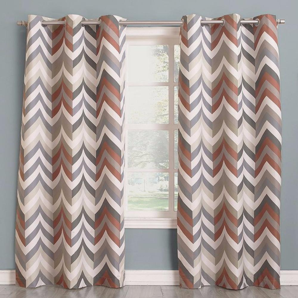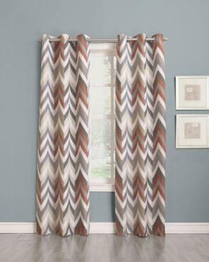 This striking Chevron Panel by Lichtenberg, is a curtain that features different shades and hues of mocha and grey, etc. Its design and fabric makes it a great new addition to your room, it will give it a fresh new modern-like look. The grommet top slides easily onto a curtain rod, making it easy to open, shut and style. The fabric isn’t heavy but it’s not to light weight, it filters out most unwanted light for a more restful environment. This curtain panel will help increase privacy in your house by reducing most visibility through your windows.