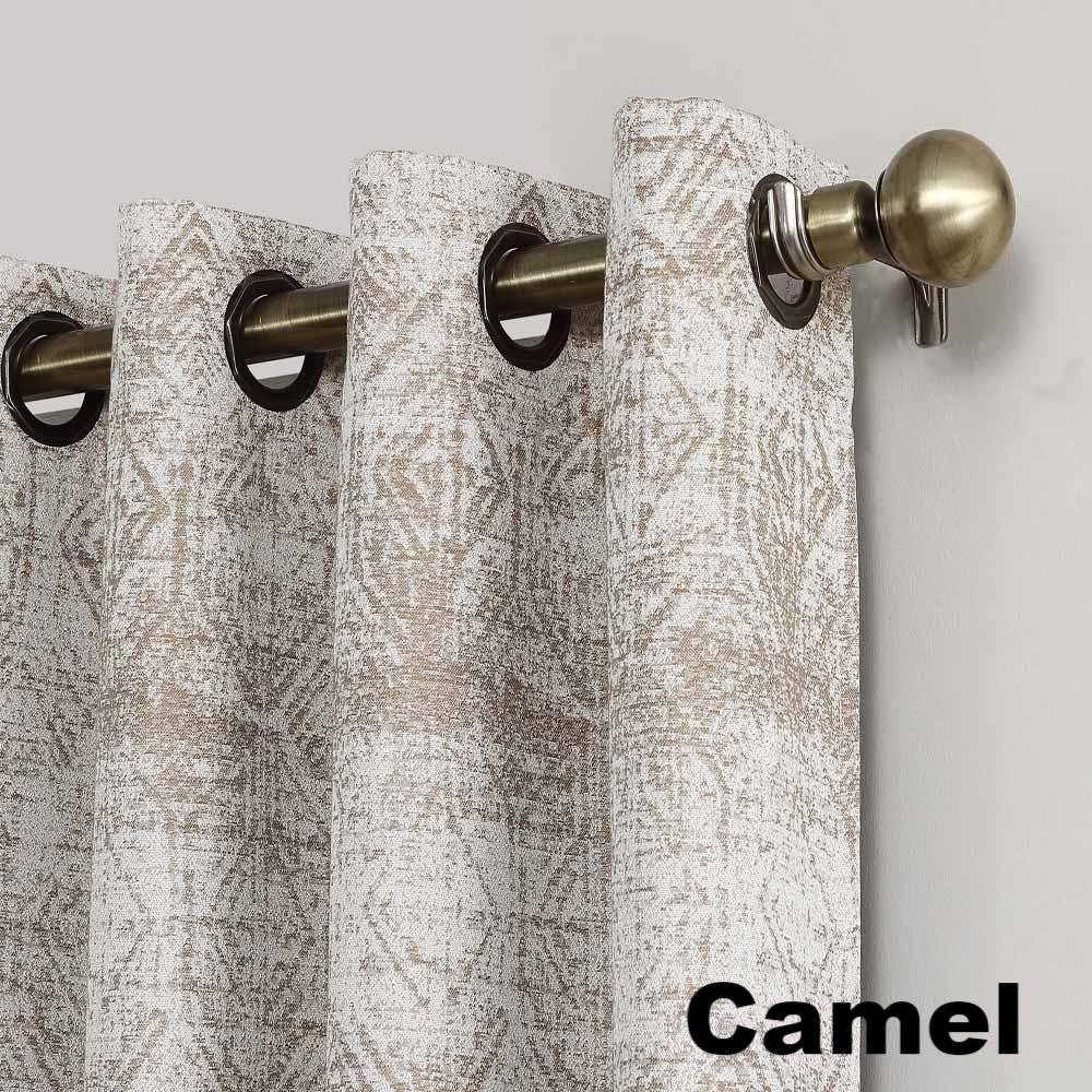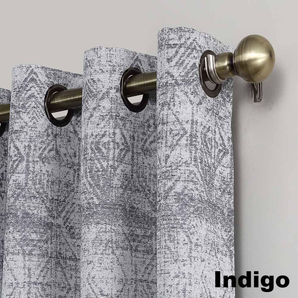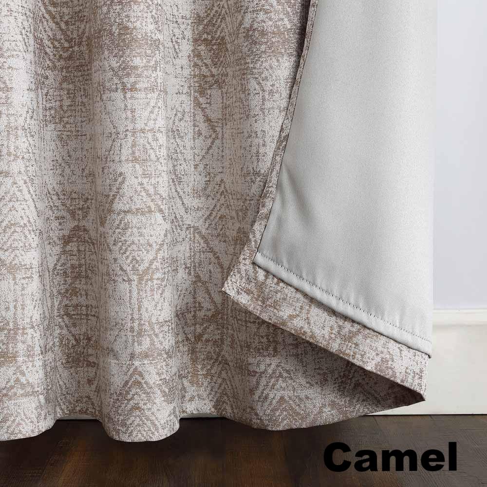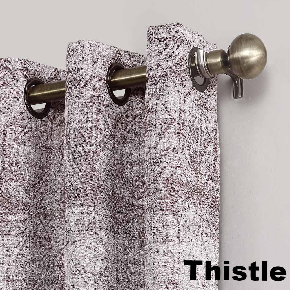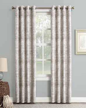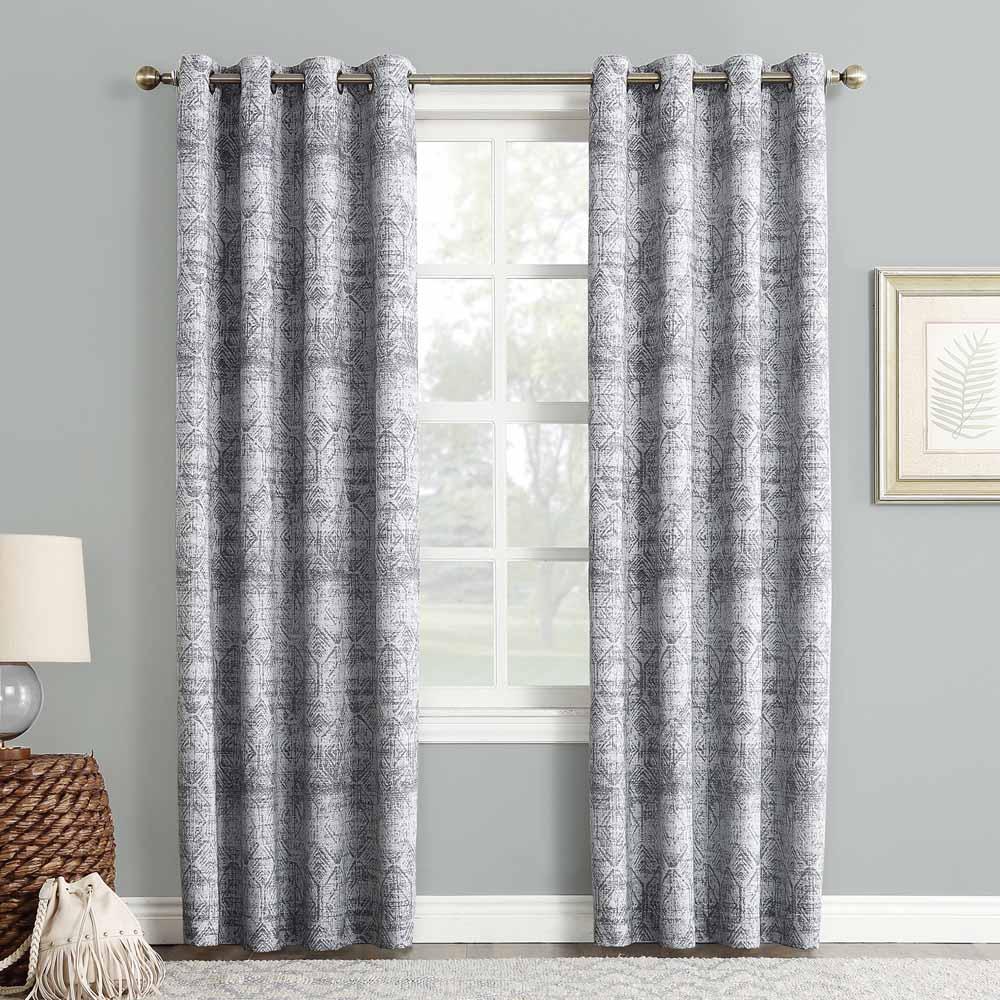 Sun Zero Darren Distressed Damask Blackout Grommet Top Panel is a perfect addition to any home décor. The elegant panel features a distressed global pattern meticulously woven with acute detail on a midweight jacquard fabric. Hanging from gorgeous Octagon shaped Grommets, which make sliding open and close easy, the Darren panel drapes beautifully. Lined with Sun Zero Blackout technology you are sure to receive a room darkening and energy efficient effect.