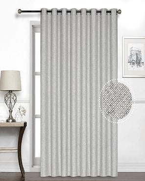 The Sunbar grommet Patio Panel is also perfect for Large Window and French Doors. Sunbar's texture adds a personal sense of natural coziness to a room’s décor. The soft colors of the assortment help to create an individual style to the environment of the room. The fabric drapes and pleats beautifully. The panel is coated with a soft black-out compound that blocks 100% of harsh outside light. The outside lining of white polyester creates a crisp and clean appearance outside of the window. This is a blackout process that allows the face fabric to have a richer natural color. The two linings also help to save energy.
