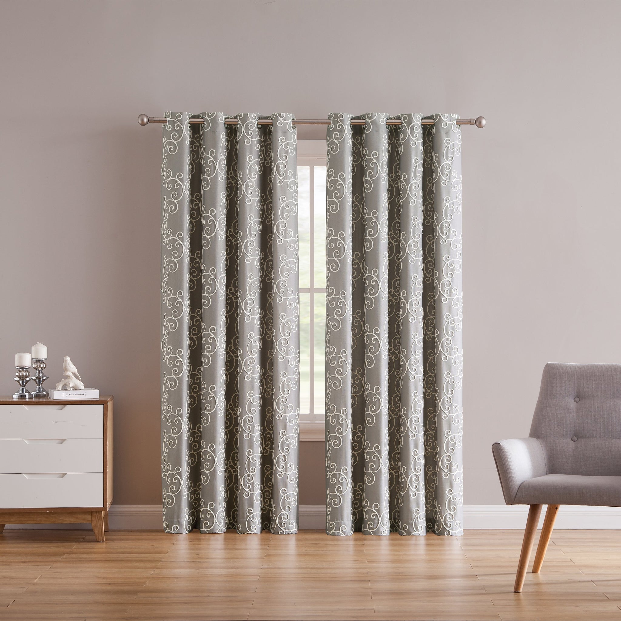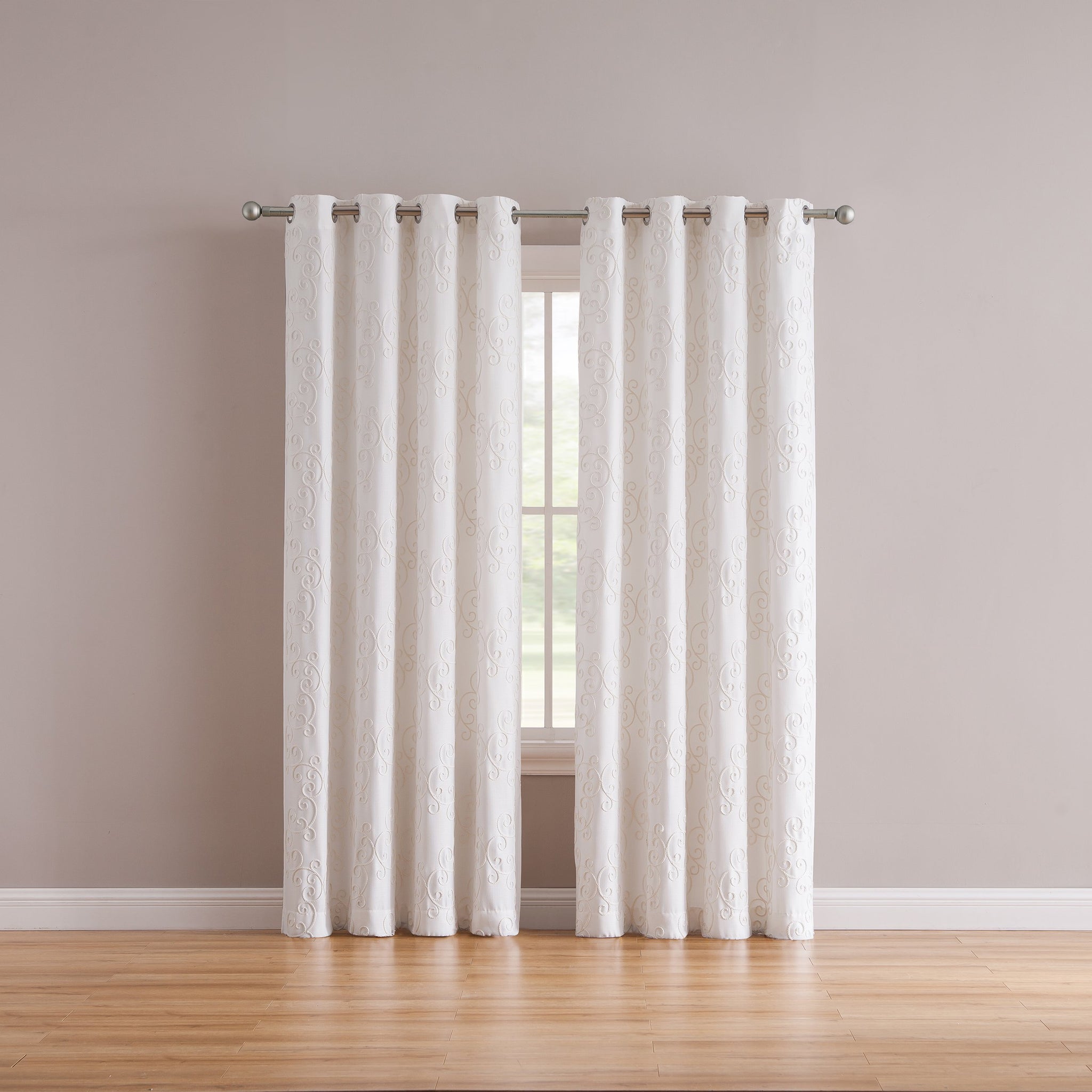 Bring a touch of elegance into your home with the Sydney Embroidered Grommet Top Panel. This beautiful curtain features an embroidered pattern that flows throughout the entire curtain. Available in silver and ivory.