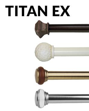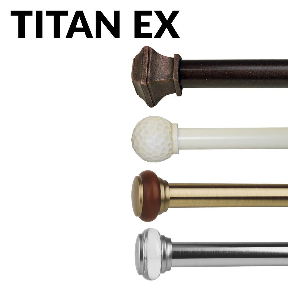 Titan is EXtra Strong, EXtra Wide, and EXtra Long! Bring timeless and bold style to your window with this Imperial finial design! Titan EX has durable telescopic steel rods and hexagonal resin finials that add sophistication to any decor. Complete adjustable (enter size ie 86” to 150”) curtain rod sets includes the Rod, necessary Brackets, and Decorative Finials. The rods are 1-1/8in in diameter and come in 3 sizes.