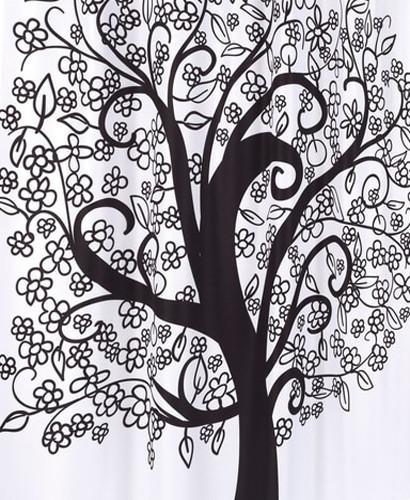 This Tree of Life Fabric Shower Curtain features a beautiful bold black tree design in a white background which beautifully contrast to leave your bathroom blossoming with style. This shower curtain not only has a plain tree design but the tree itself is filled with leaves and flowers, covering most if not all the entire shower curtain. Also, this shower curtain is made with a soft polyester fabric, made to fit standard-sized showers/bathtubs. This shower curtain is practical and will coordinate with any already existing bathroom décor.