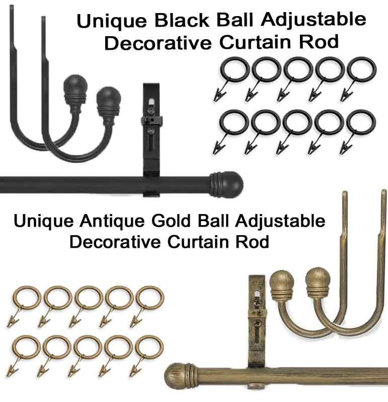 Add style and a touch of elegance to your window treatments with this decorative Antique Gold or Black Ball rod from the Unique collection by Source Global. This rod features a small brushed gold or black Ball rod and is adjustable in width as well as projection and the set includes rod and hardware.