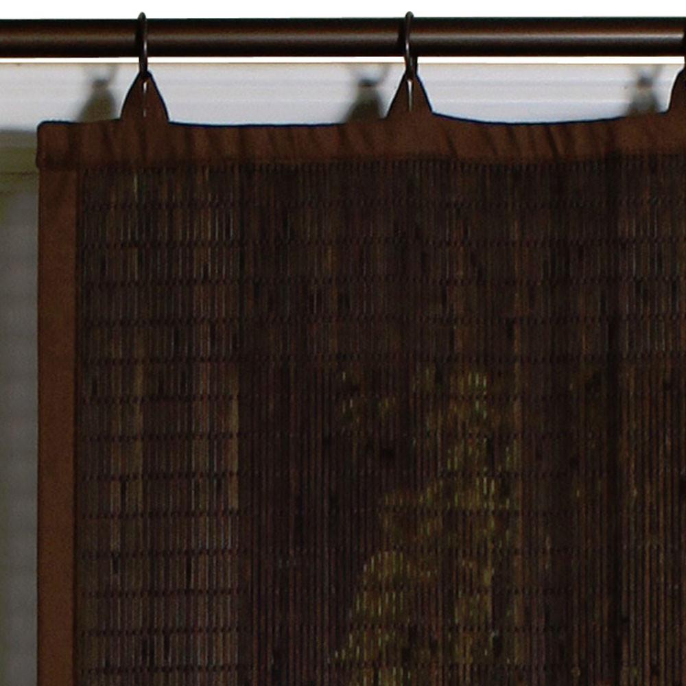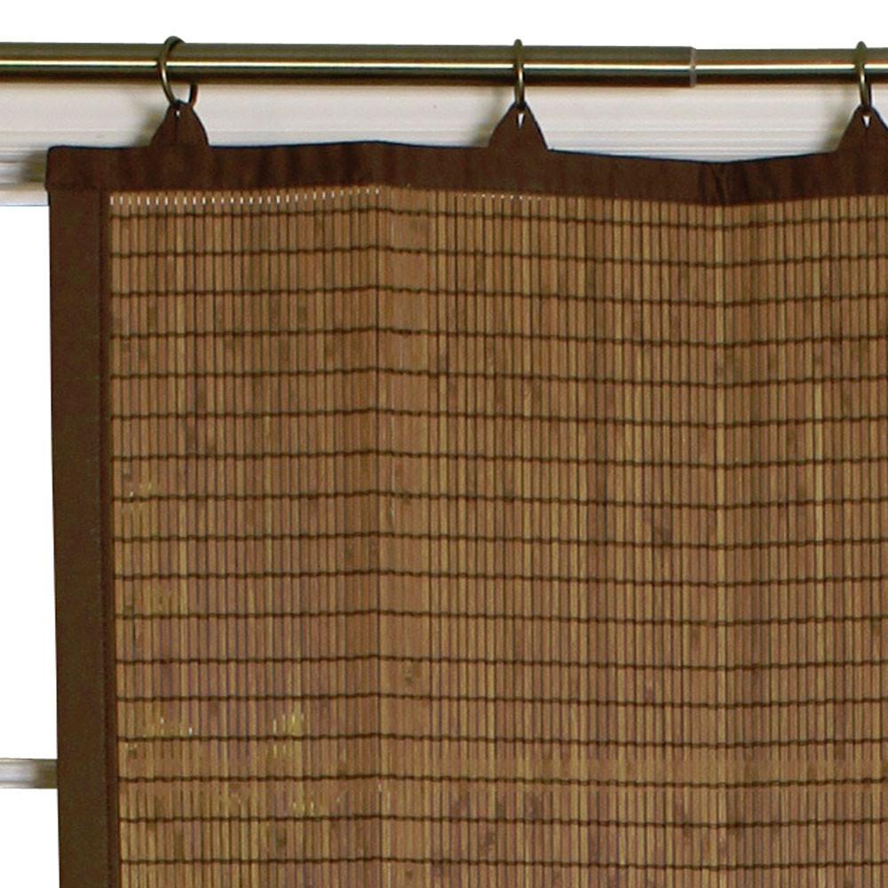 Bring the look of roman shade bamboo material into your room with this unique panel. Moderate light-filtering bamboo accents have a patented Easy glide, rust-resistant, metal ring-top mounting system that allows for ease side to side opening without dangerous cords. These panels are made from eco-friendly 100% Organic bamboo and comes in your choice of 3 finishes. Each panel is adorned with a 100% Cotton -Coordination Colour fabric trim. The Espresso and Colonia Finished Panel are trimmed with a with Brown Colour and Dark Brown rust resistant 1 ½” inch Diameter rings. The Driftwood Finished Panel is trimmed with Khaki Colour and Antique Brass Rings rust resistant 1 ½” inch Diameter rings. Use of decorative rod recommended. All available are the Tiers and Valances