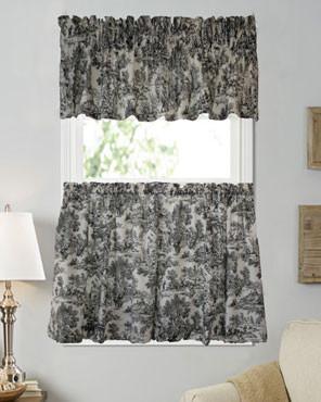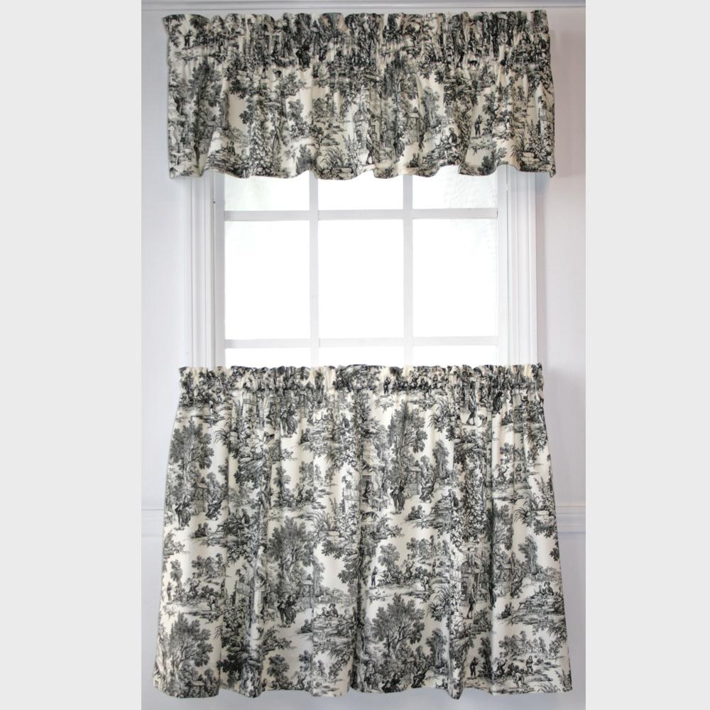 The Ellis Victoria Park Toile Tailored Tier Pair of Curtains, and Tailored Valance originated in France in the 18th century and immediately became a popular decorating pattern that still holds true today. The classic country scenes and soft cotton fabric will change and improve the look and feel of any room while adding a touch of style. Made with a high quality fabric that will create a smooth draping effect and softer texture that can’t be achieved with inferior synthetic fabrics. You are sure to get a curtain that is both beautiful and functional in a decorating pattern that's timeless and long lasting. Tailored Tier curtains are used to cover the lower portion of your windows, with a coordinating tailored valance on top, or used alone on shorter length windows. These tier pairs and tailored valance are commonly used in bathrooms, bedrooms, kitchens or any other windows where privacy is wanted. Valance and Tier are sold separately