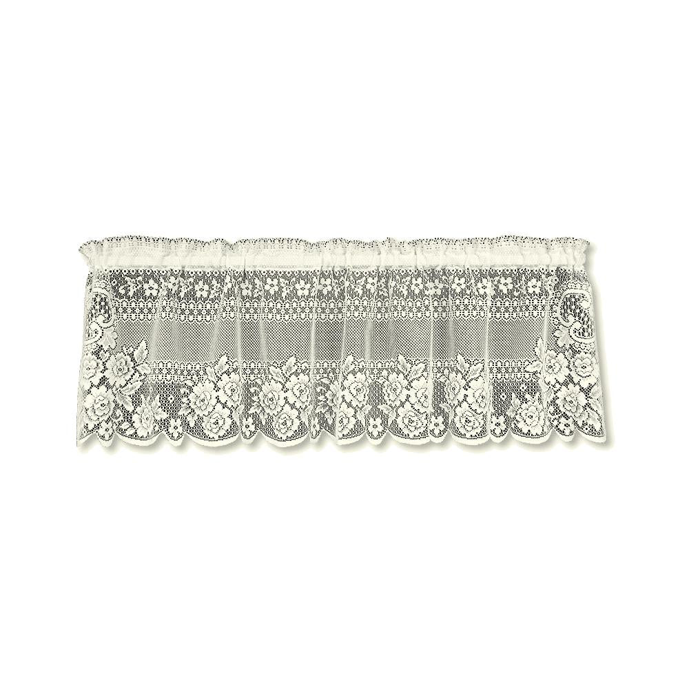 The bold floral pattern of the Victorian Rose valance is an impressive design executed in a beautifully textured lace. This lightweight window treatment is finished with a delightful scalloped hem.