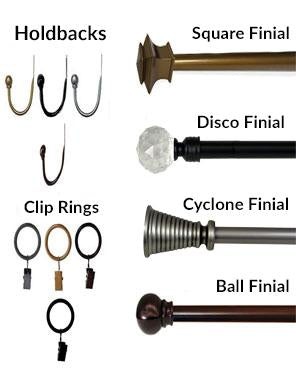 Add a unique touch to your window with these adjustable curtain rod sets. Each set includes the rod, necessary brackets and decorative finials. The rods are 5/8" in diameter and come in 3 sizes. Accessories available include Clip Rings and Hold-backs .