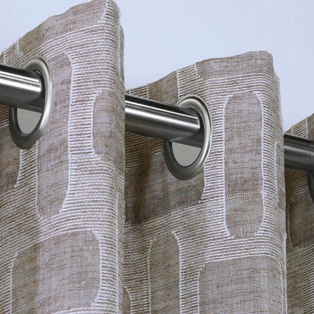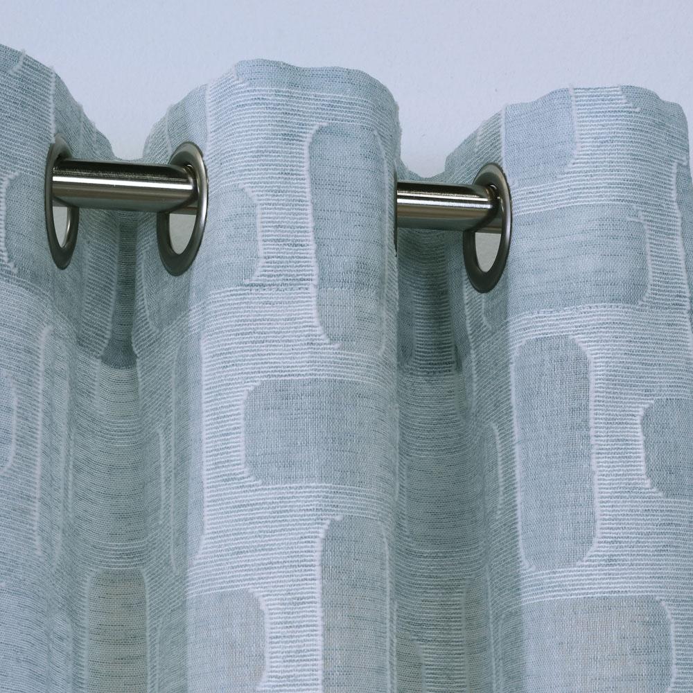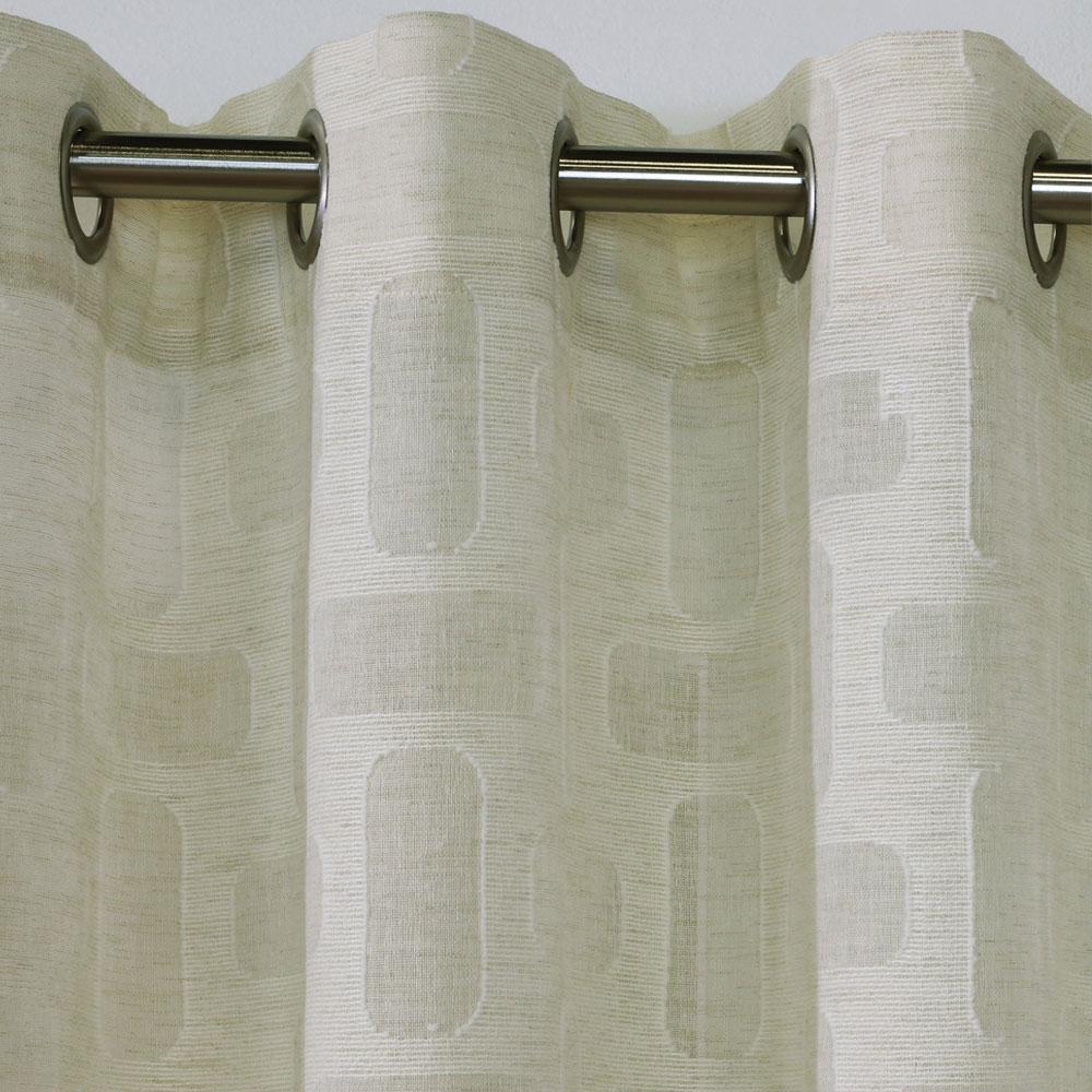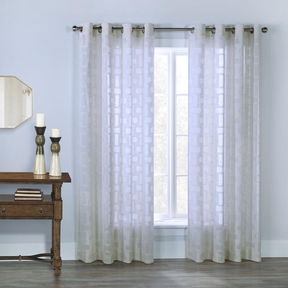 The Voltaire Grommet Top Panel is a relaxed semi sheer curtain with a contemporary geometric pattern throughout. This panel can be used to enhance any décor whether it is used as a stand-alone panel or in conjunction with other offering that that decorative flare.