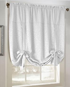The Whitfield Tie-Up Shade by Lorraine Home Fashions features two sewn-in straps for adjusting the shade to your desired length. Whitfield is a heavy weight jacquard Tie-Up Shade, woven in an all-over tone on tone leaf motif which adds elegance to any room.Features: