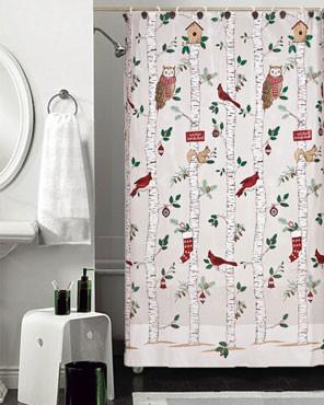 Winter Birch Peva Shower Curtain features, lovely red robins, squirrels, owls with scarfs, and ornaments, on white trees. This is a festive and fun way to bring the outdoor beauty inside. Not only will it brighten up your bathroom, but it will also, coordinate easily with most of your already existing bathroom decor.
