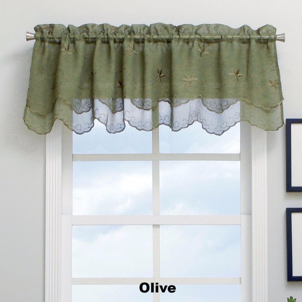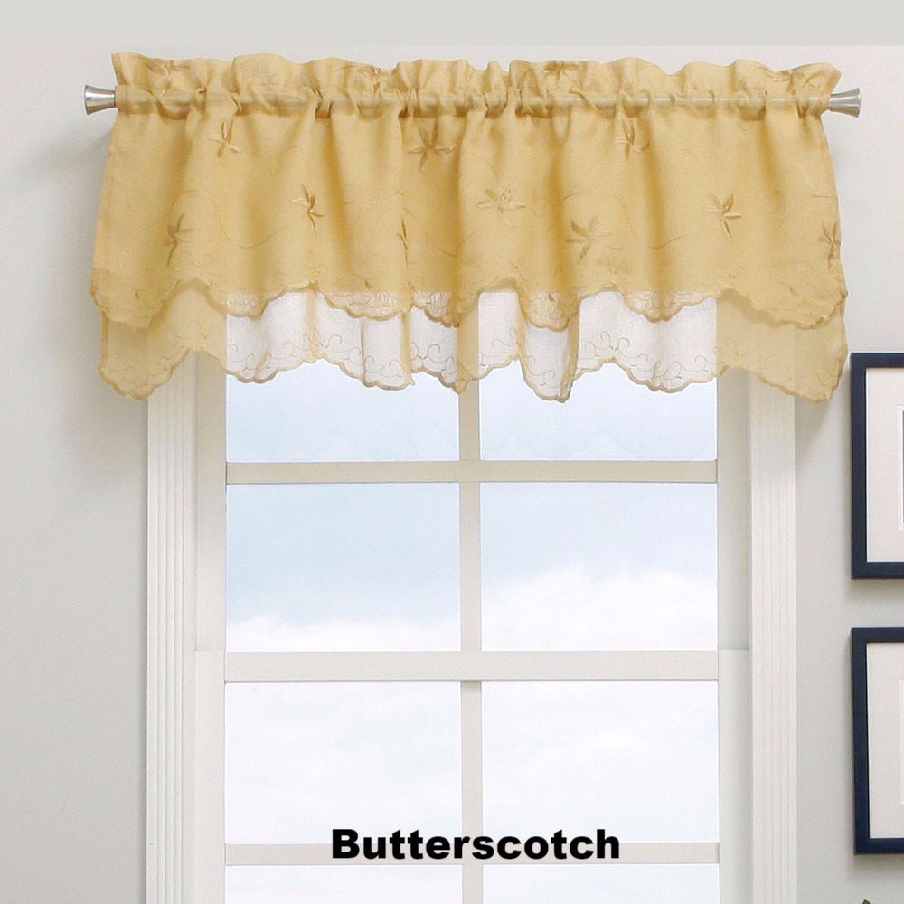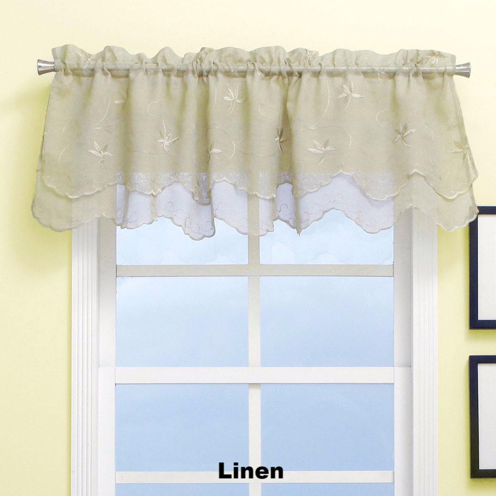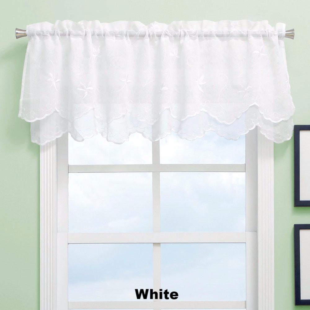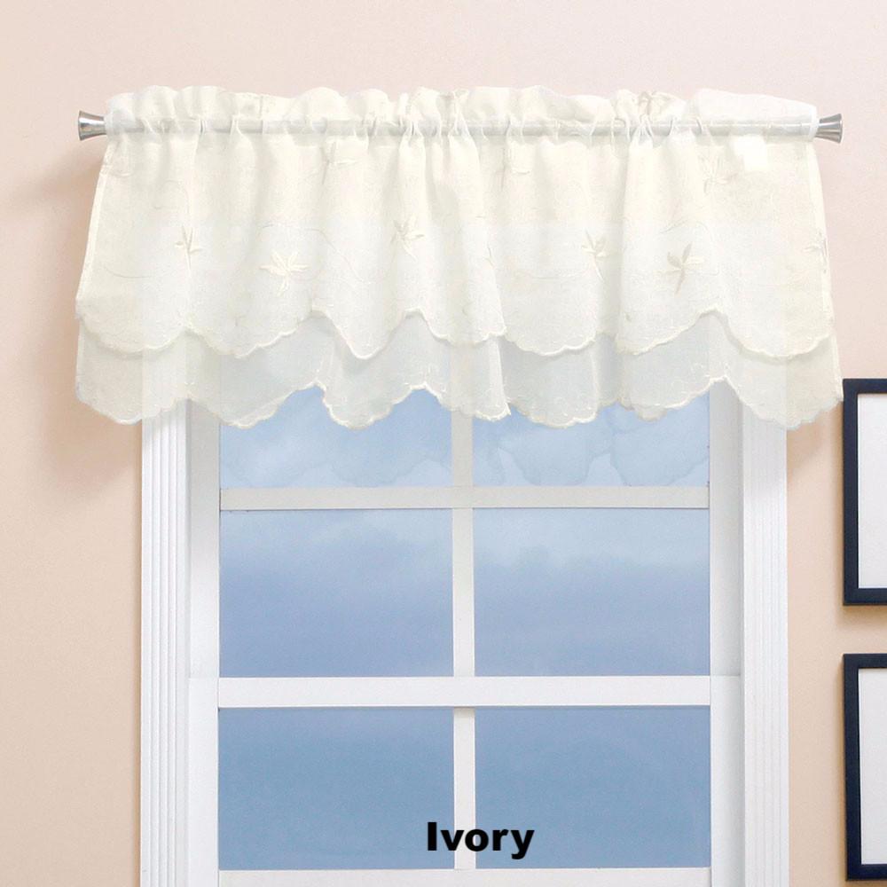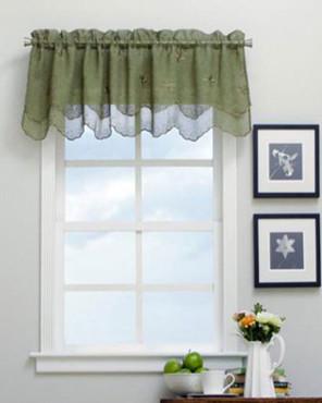 Re-decorate your home with this beautiful Zurich vine and leaf scalloped valance. The sheer curtain falls gently in scalloped billows from a curtain rod through its deep pocket, softening the light coming into your bedroom or office.